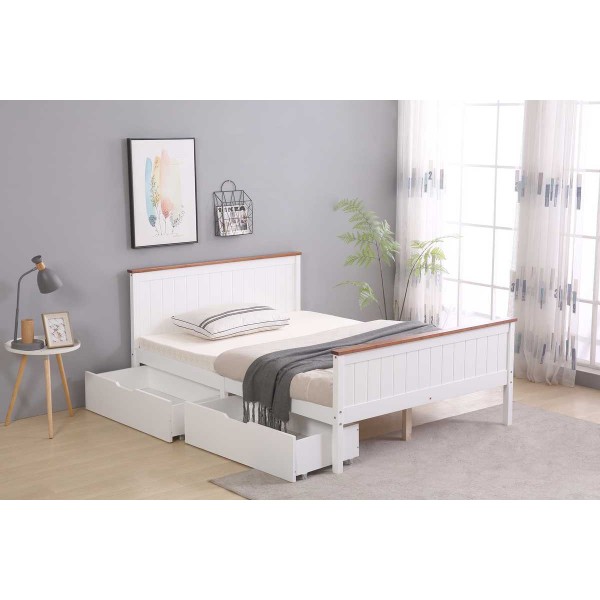 4ft6 double white with oak top and 2 drawer (bed frame only)