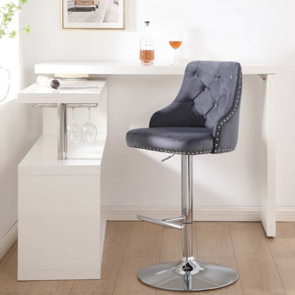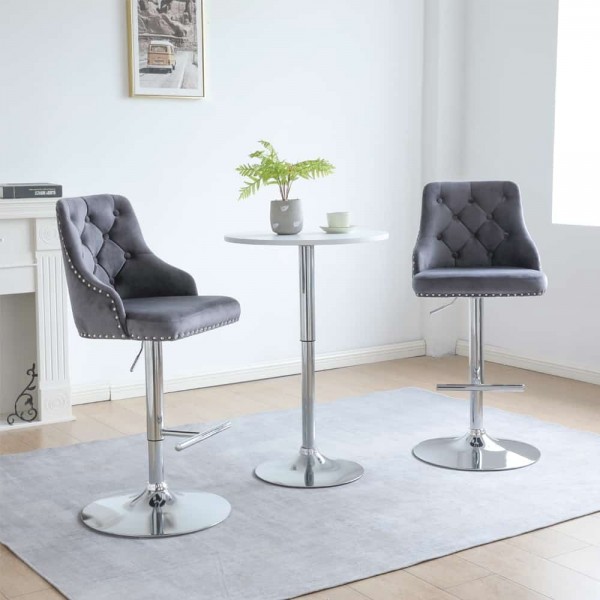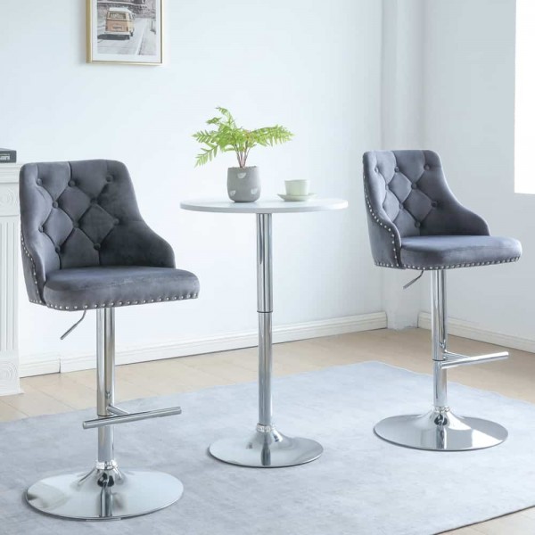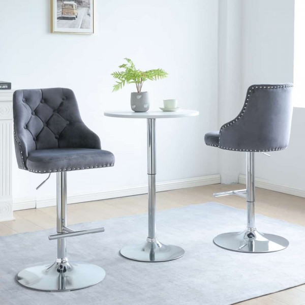 Avers Velvet Bar Stool In Grey - Set Of 2