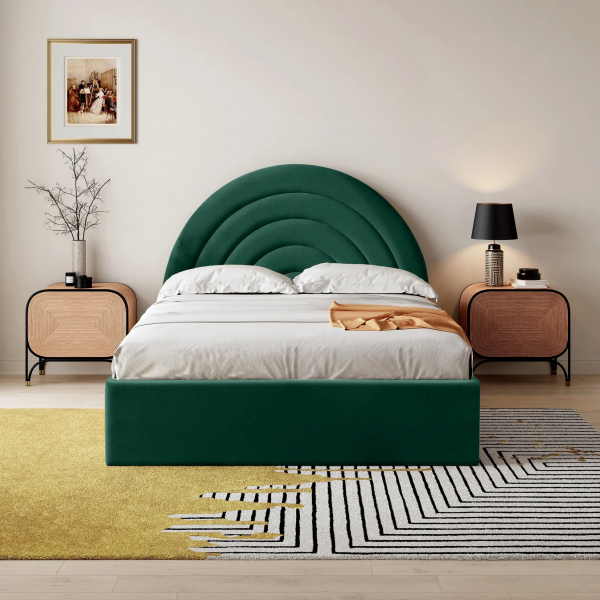 Crescent Ottoman Upholstered Lift Up Storage Bed Frame in green Velvet - Double