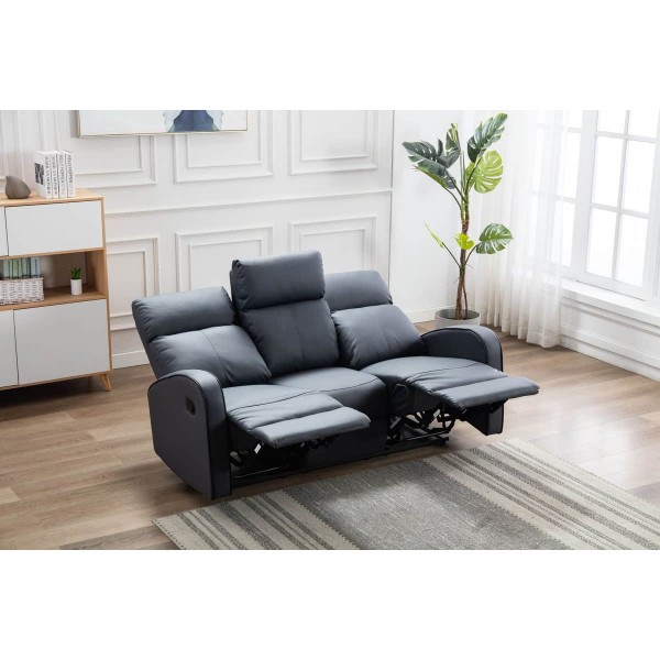 grey bounded leather recliner sofa 3 seat