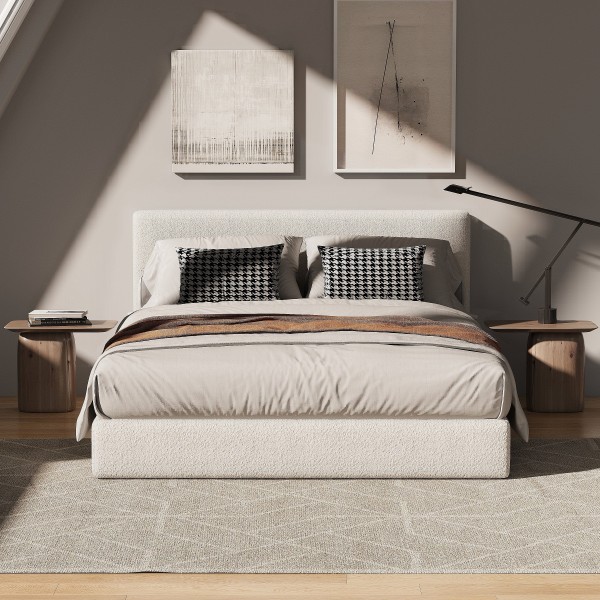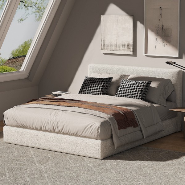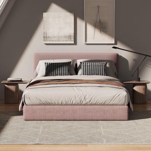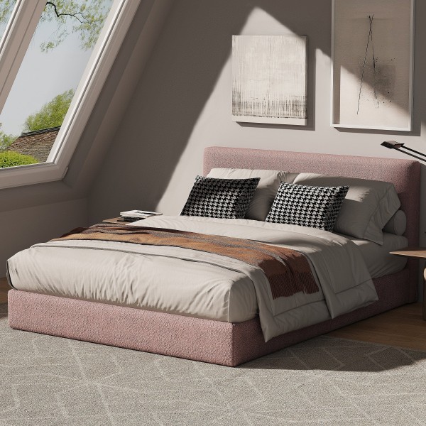 Marshmuff Soft Frame Boucle Bed Frame With Headboard King Bed Brown / White / Pink