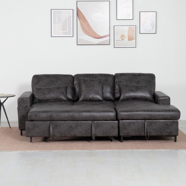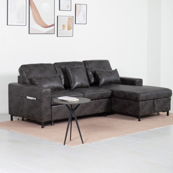 PU Leather 3 Seater Corner Sofa Bed With Corner Chaise and Storage