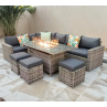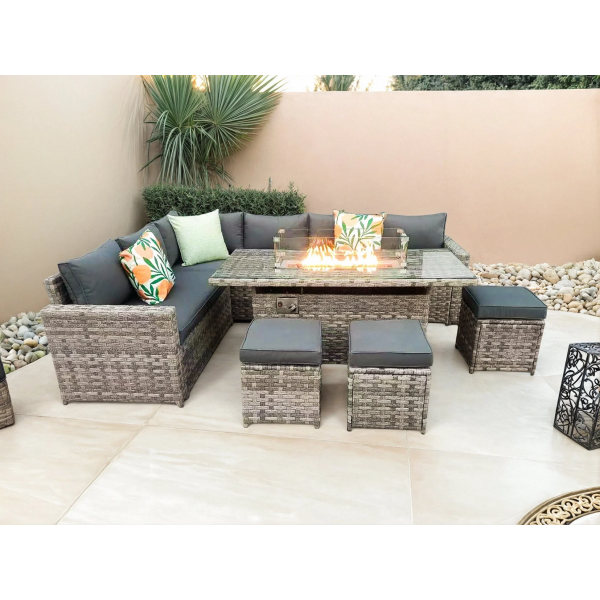 Barcelona Rattan Garden Furniture 9 Seater Corner Sofa Set with Fire pit Dining Table - Grey